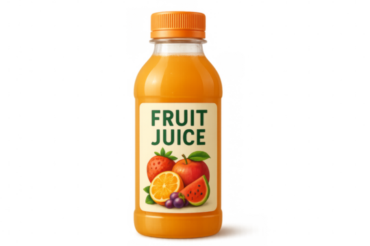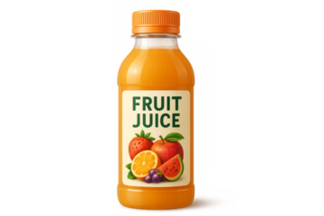 Plastic bottle of refreshing fruit juice with transparent background