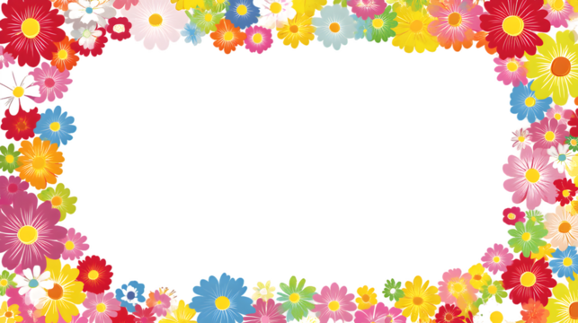 Vibrant colorful flower frame with a transparent background. Perfect for spring and summer designs