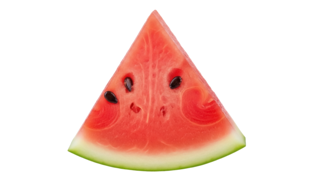 Isolated slice of watermelon with seeds, summer fruit in the shape of a triangle on bright light