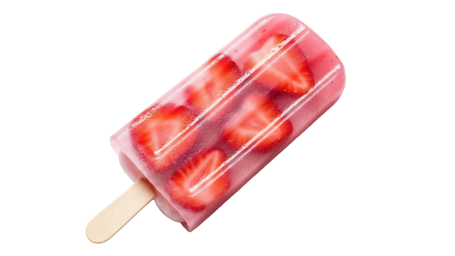 Strawberry popsicle isolated PNG, refreshing summer treat with real fruit on transparent background, healthy snack for kids and adults