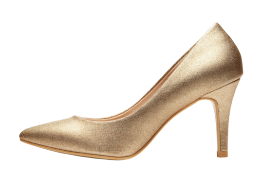 Elegant orange leather cork heeled sandals isolated on transparent background