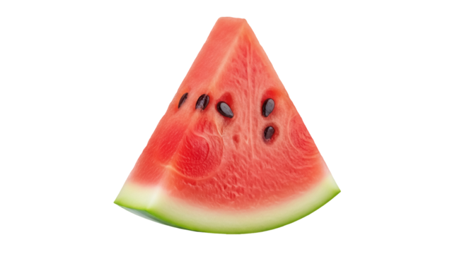 Juicy watermelon slice isolated PNG, refreshing summer fruit with red flesh and black seeds on transparent background, healthy snack