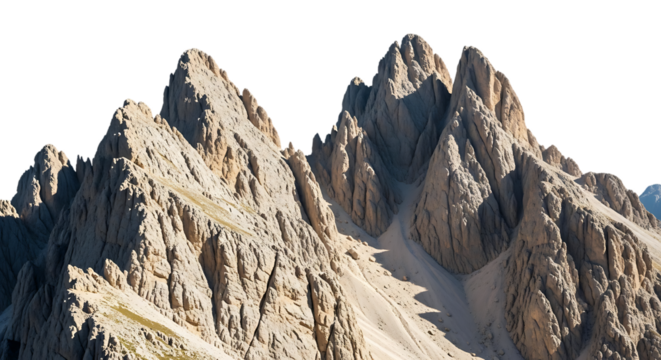 Jagged mountain peaks with dramatic sunlight and shadow on background isolated on a transparent background