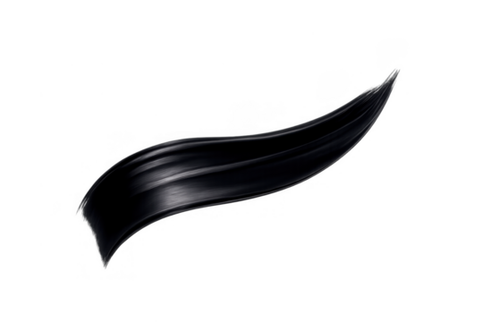 Flowing black paint stroke adding dynamic texture and artistic liquid element with transparent background