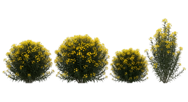 Set of six different types of plants, including a daisy, a tree, and a bush