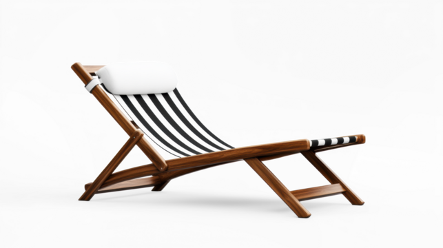 Wooden beach chair with canvas isolated on a transparent background, summer vibes