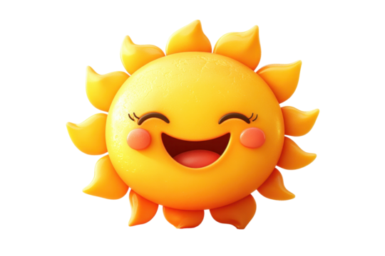 Bright and cheerful smiling sun icon with rays shining out, perfect for summer themes, illustrations, or children's artwork in a vibrant, eye-catching style