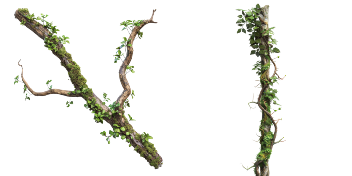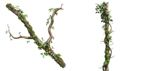 Sunlit Mossy Creeper Polished Wooden Rod Isolated on Transparent or White Background, PNG