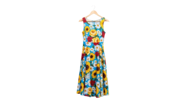 Bright Floral Sundress with Summer Accessories – Isolated PNG
