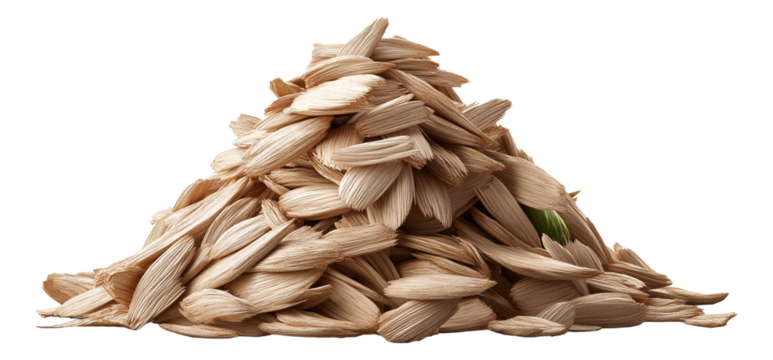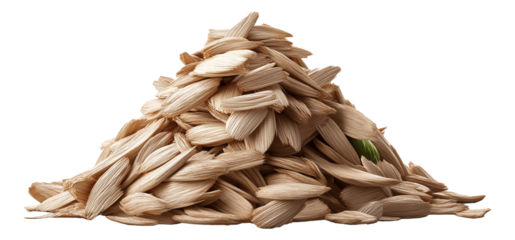 A pile of brown sunflower seed hulls arranged in a cone shape on transparent background.