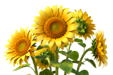Yellow sunflower plant, isolated on white or transparent background. PNG