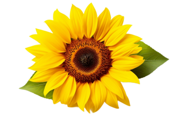 Three sunflowers isolated on transparent background. Set of elements for creating collage or design, postcards, invitations.