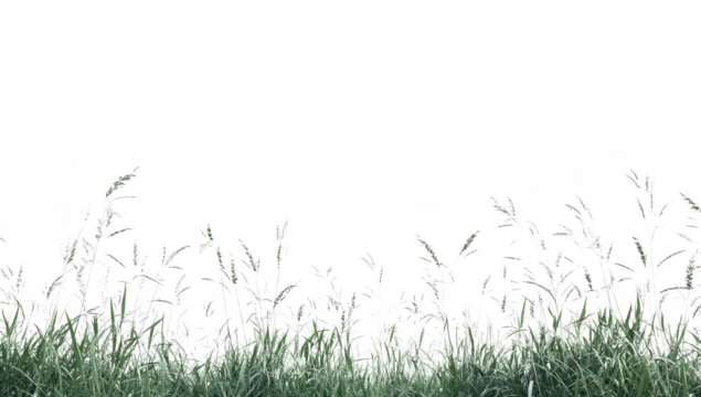 Waving grass shoots in bright field nature scene tranquil isolated on transparent background, png