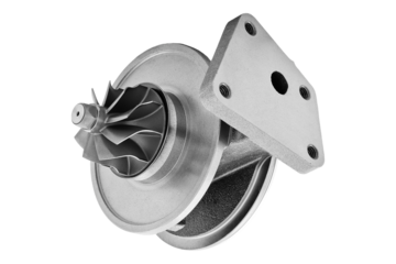 Shiny Metal Turbocharger on White Background