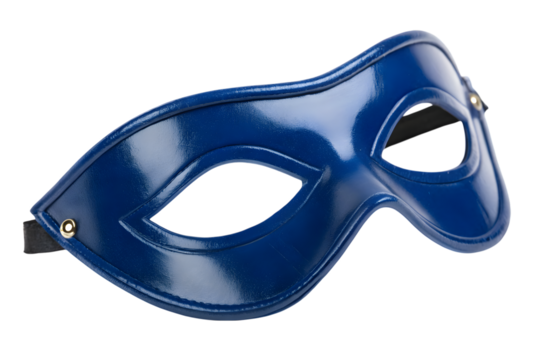 Shiny metallic superhero mask with glowing red eyes, sharp edges, and transparent background, exuding mystery and power