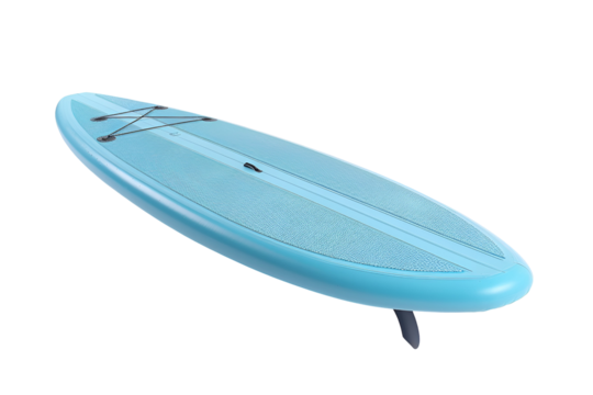 Blue and white inflatable sup board isolated on transparent background, perfect for watersports and summer activities