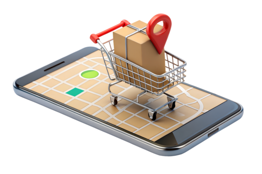 3d rendering of a red shopping cart isolated on transparent background, symbolizing online shopping and e-commerce
