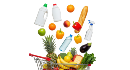 Isolated Groceries Falling into Shopping Cart