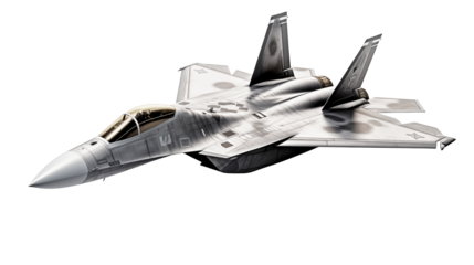 Sleek military jet is silhouetted against a transparent background, showcasing its modern design.