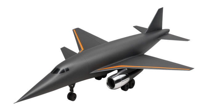 Isolated Illustration of a supersonic transport plane with delta wing design in silver and blue
