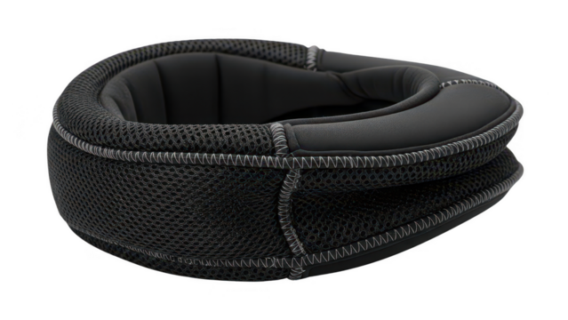 Black knee brace mockup providing clear product visualization, highlighting sports medicine support and rehabilitation equipment against transparent background