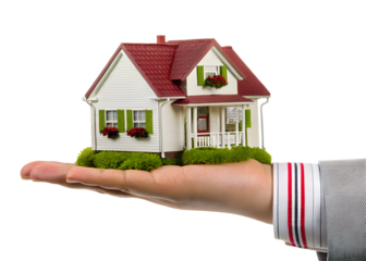 Four hands in suits support the small plant together, conveying collaboration, responsibility, and environmental commitment in business, isolated on a transparent background