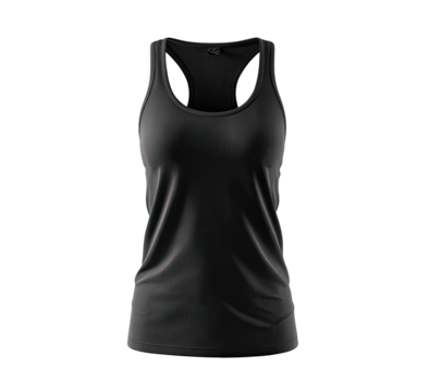 A dark gray, women's athletic tank top.  Features a simple, racerback design.  Studio shot, isolated on black
