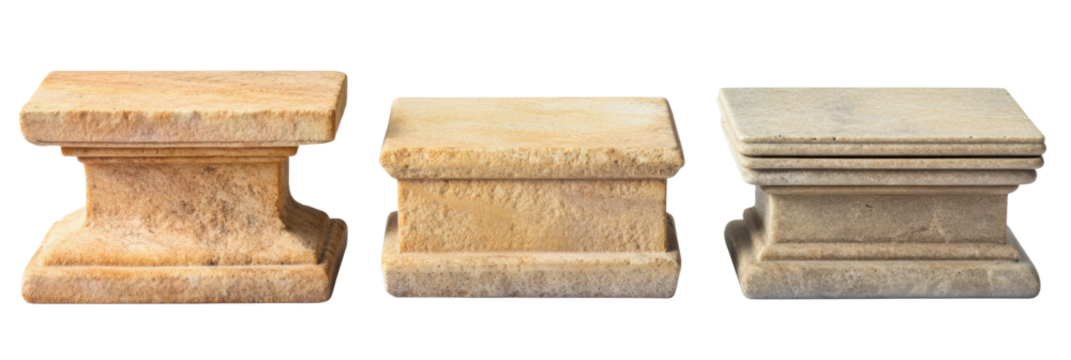 Drei Steinsockel ausgerichtet isoliert auf transparentem Hintergrund png