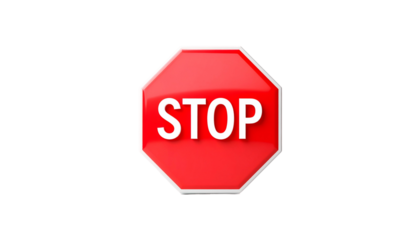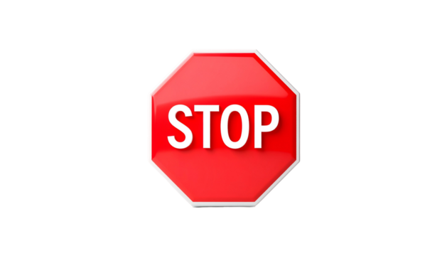 Octagonal red sign with white text against black background