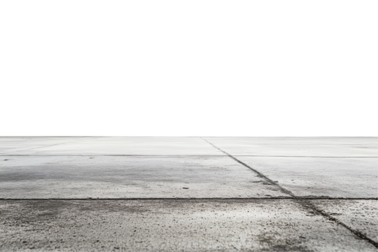 Weathered concrete surface with visible cracks and texture isolated on transparent background. Concrete floor isolated on white background.