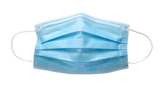 medical face mask, disposable blue surgical type, healthcare protection gear, isolated on white background