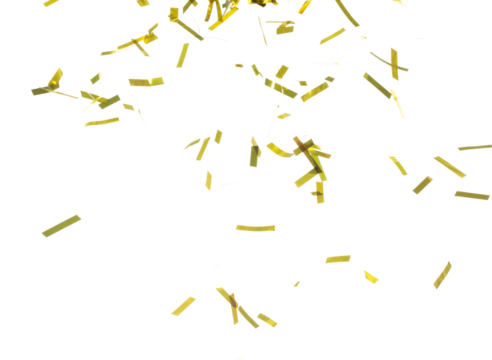 Golden Confetti Foil fall splashing in air. Gold Confetti Foil explosion flying, abstract cloud fly. Many Party glitter scatter in many group. White background isolated high speed shutter freeze