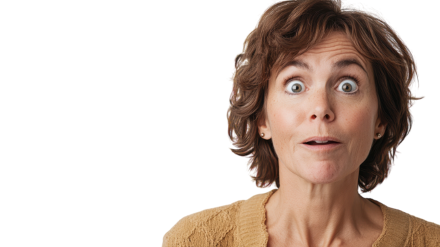 A mature woman expressing disbelief with her eyes, showcasing a range of emotions suitable for illustrating various narratives in articles, blogs, or marketing materials..
