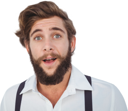 Fashion, surprise or doubt with a hipster man isolated on a transparent background looking nervous. Style, worry and a confused young male person looking shocked or scared by information on PNG