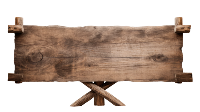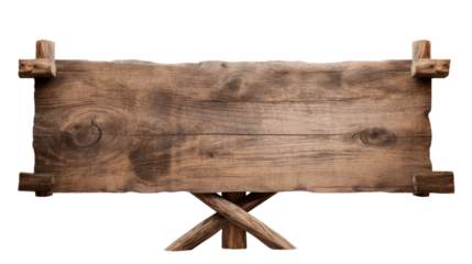 Wooden Sign With Crossed Legs. On a White or Clear Surface PNG Transparent Background..