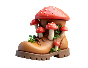3D Render Mushroom Boot Illustration