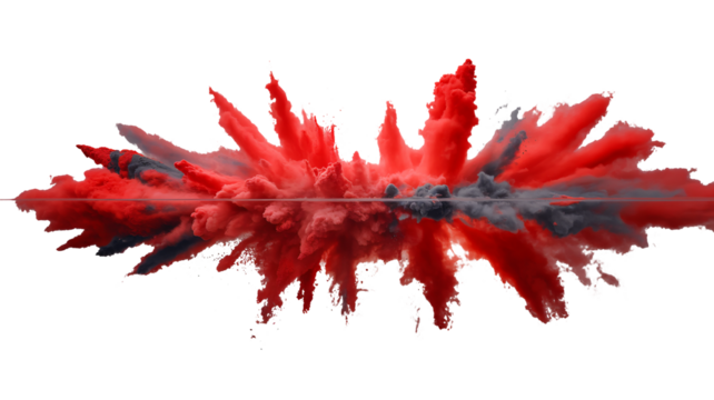 Vibrant red and gray smoke explosion on white background