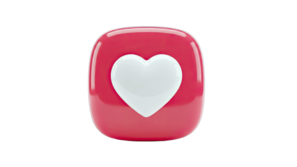 3D Red Like Button with White Heart Icon Isolated on transparent background