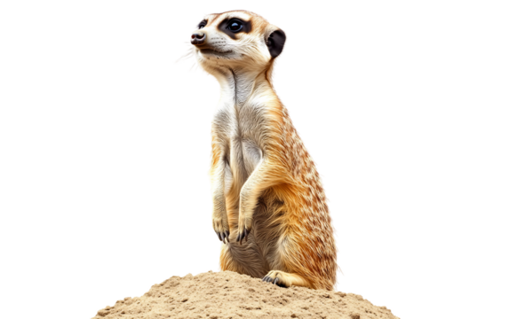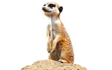 Vigilant Meerkat Standing Upright on a Sandy Hill in Its Natural Habitat Isolated on transparent background PNG