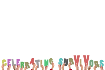 Digital png illustration of hands holding celebrating survivors text on transparent background