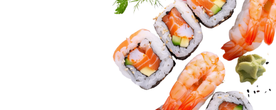 Vibrant sushi set illustration on transparent background for decoration