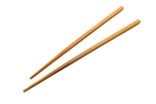 Pair of wooden chopsticks isolated on white background. Essential for enjoying Asian cuisine. Perfect for culinary, kitchen, and tableware themes.