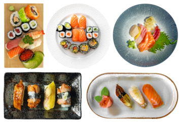 Flat design sushi array transparent for japanese culinary art