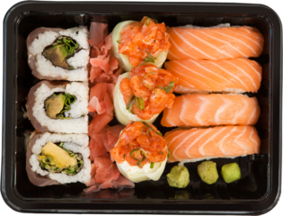 Transparent background sushi rolls on serving platter illustration