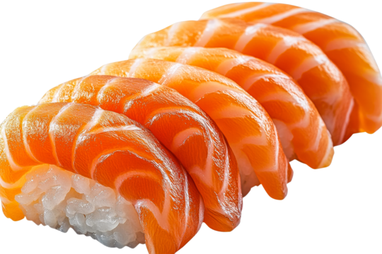 Chopsticks holding illustrated salmon nigiri on transparent background