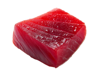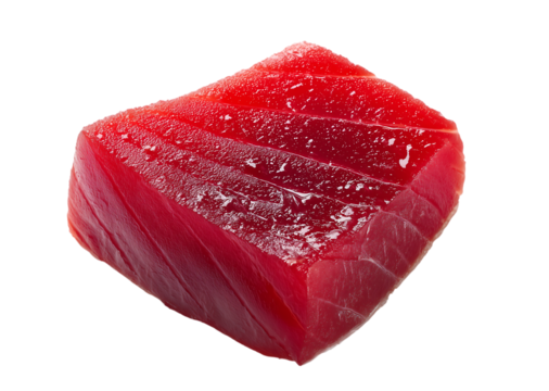 Fresh Ahi Tuna Fillet Steak isolated on a transparent background, Ready for Sashimi or Sushi Preparation