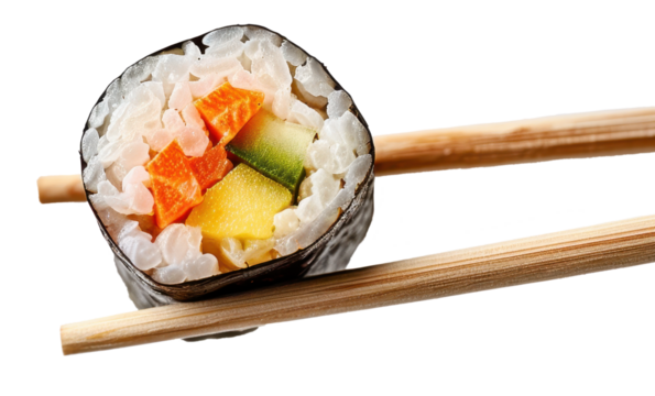 Holding chopsticks picking up sushi 1 piece isolated on transparent background, for japanese food concept, menu recommend and advertising in restaurant.