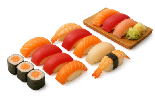 Set of assorted sushi rolls with fresh ingredients, cut out - stock png.