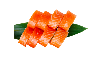 Transparent background fresh salmon sushi with chopsticks arrangement