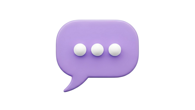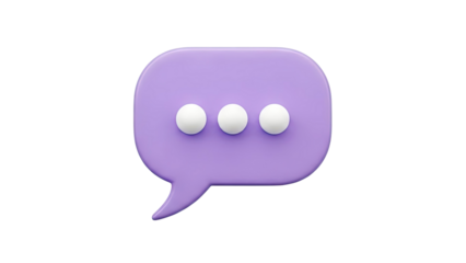 3D Purple speech bubble with three yellow dots on transparent background